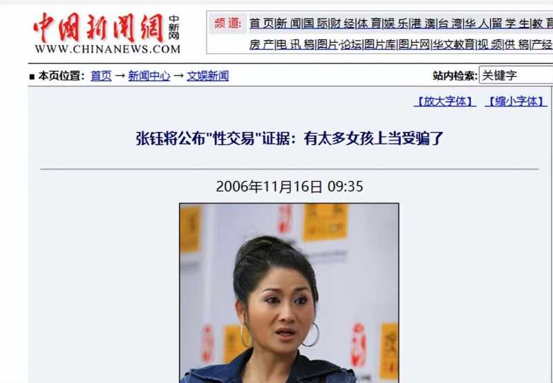 根据中国新闻网的报道,这个事情刊登于2006年11月16日发布的《张钰将公布“性交易”证据:有太多女孩上当受骗了》