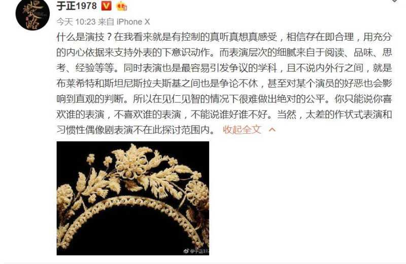 面对网络上沸沸扬扬的讨论,于正首先以一篇长文的形式表达了自己对演技的独到见解。他强调,表演艺术本就主观,难以用统一标准衡量,并澄清自己的言论并无针对之意。