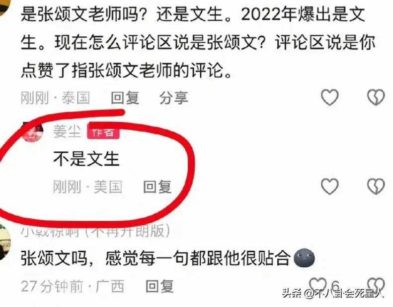 最令人费解的是,当网友们在评论区里问姜尘的前任是否张颂文还是文生时,姜尘否认了是文生,却对张颂文这个名字不承认也不否认。