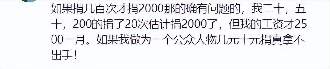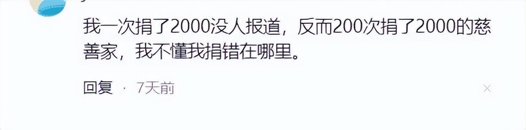 于是发表评论:“我一次捐2000元没人报道,我不知道捐错在哪里?”