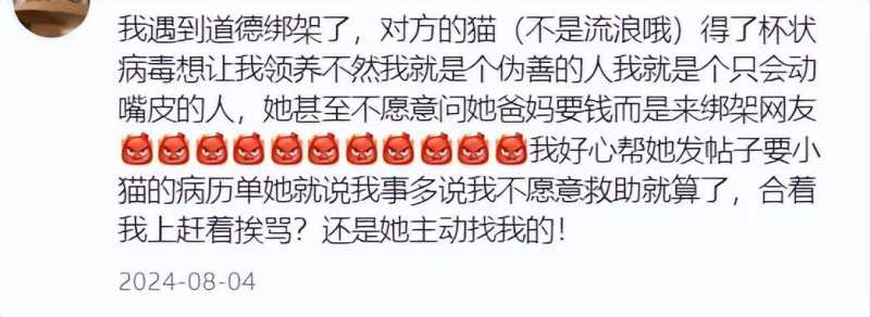 因为是学生没时间养猫,在提出拒绝后甚至表示愿意出点钱,仍遭到对方破口大骂。