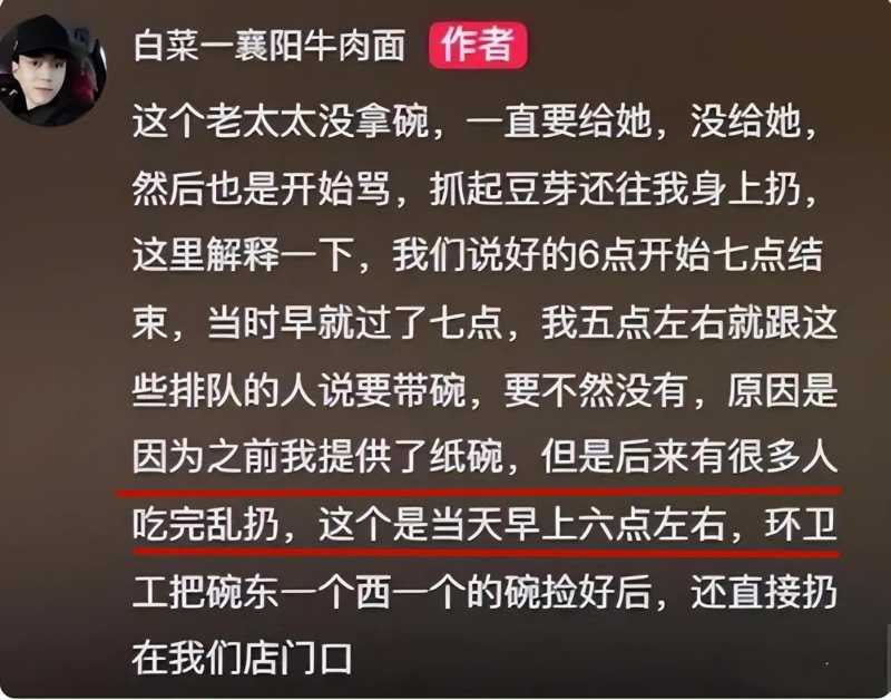 起因是,有天一位老太太没有自带碗筷,博主看到后还提醒她快点回去拿碗。