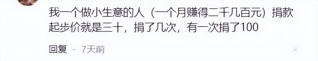 有人在评论区晒出了自己的格局:“我是一个做小生意的人,捐款起步价就是三十,有一次还捐了一百块。”