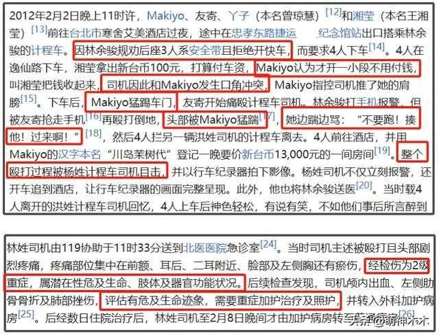 原来除了爆料大小S、杨丞琳等人,Makiyo还在上节目过程中给被打司机泼脏水,声称对方根本没有昏迷,情况一点都不严重,就是为了讹钱,拿到赔偿金之前还出国游玩了。