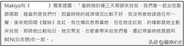 ——潘玮柏、陈妍希等人出面力挺杨丞琳,间接打脸了Makiyo,对比之下,Makiyo身边好友集体沉默,从小S到范玮琪,无人出来帮Makiyo说话,不知道是不是恼羞成怒,Makiyo突然改口,一边无视杨丞琳的起诉警告,一边继续爆料杨丞琳哈日,还翻出了杨丞琳和男星白吉胜的旧恋情。