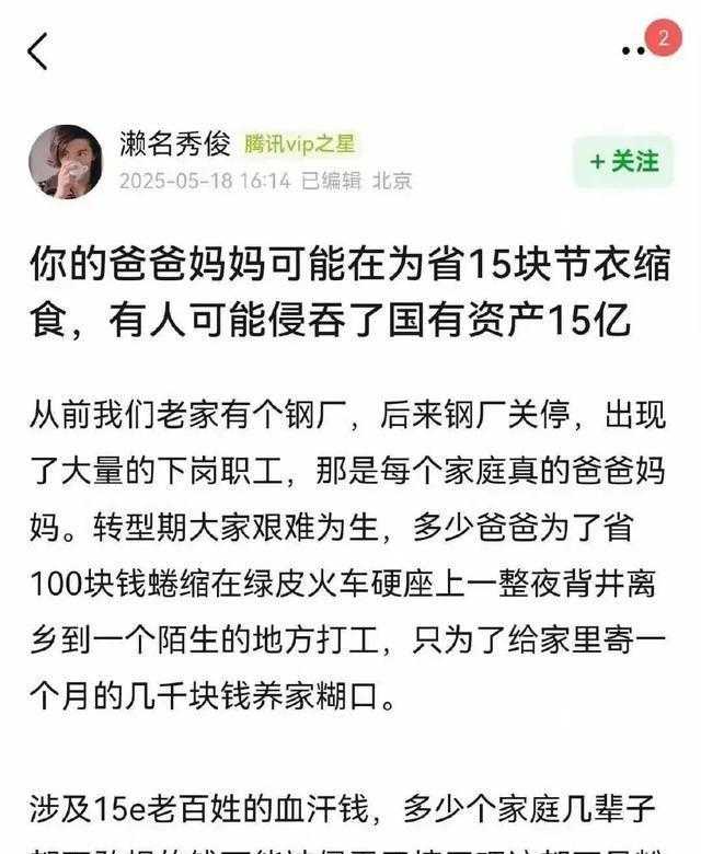 但这次爆出的问题可就严重多了。网友们主要质疑几点:一是她爷爷据说是钢铁工会的主席;二是她父母经营钢铁生意,但按规定,工会主席的家属是不能从事相关行业的;三是可能涉及侵吞15亿资产的问题。这些质疑如果属实,那可不仅仅是明星家庭富裕的问题,而是涉及到违规甚至违法了。