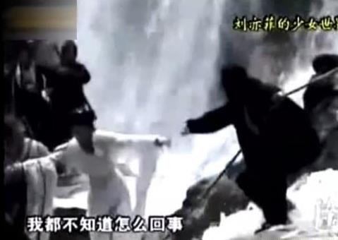 说时迟那时快,在毫无保护的情况下,刘亦菲被瀑布的气浪打倒,然后跌进了湍急的河流中。