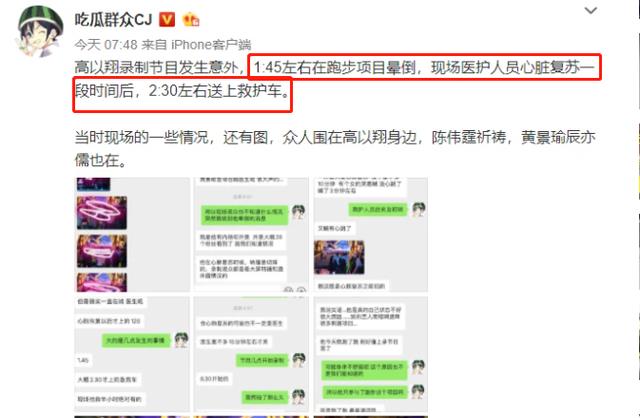 高以翔:1点45晕倒,2点30才被抬上救护车