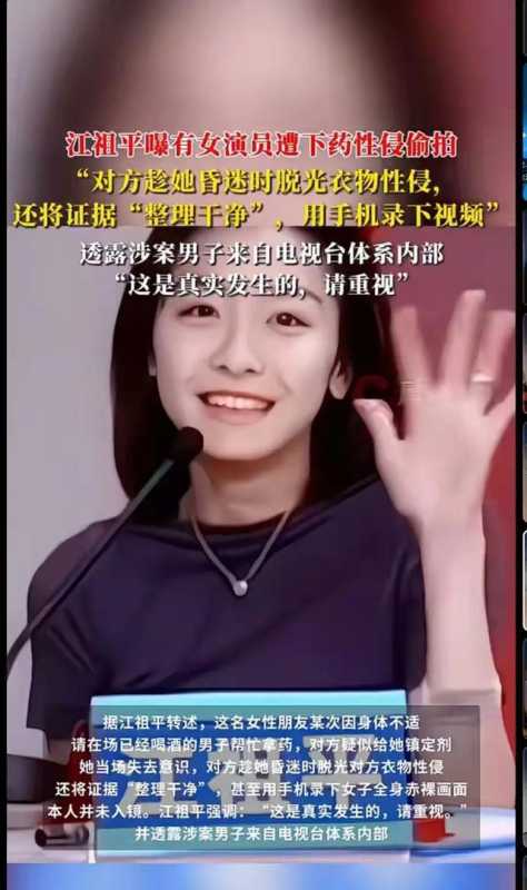 知名女星爆料女演员遭下药性侵偷拍,电视台内部男子涉案