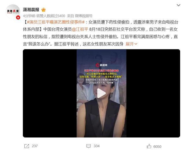 8月18日,中国台湾演员江祖平在社交平台的一篇长文投下震撼弹。她公开了一名女性友人(A女)遭遇电视台关系人士性侵偷拍的求助信,配文“满是困惑与心疼”和“我该怎么办”,瞬间将演艺圈的性暴力黑幕撕开了一道口子。