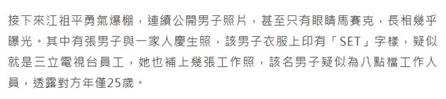 据台媒爆料,男方应该是台湾某电视台的员工,现年25岁,已经结婚生子,在犯下恶行后悄悄离职,但至今没有道歉。