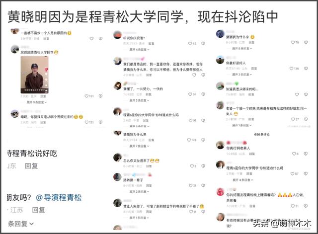 焦迈奇评论区同样没能幸免,黄晓明评论区也是重灾区,仅仅因为黄晓明给程青松录制了一个片段,说两人是同学,造谣攻击就来了。