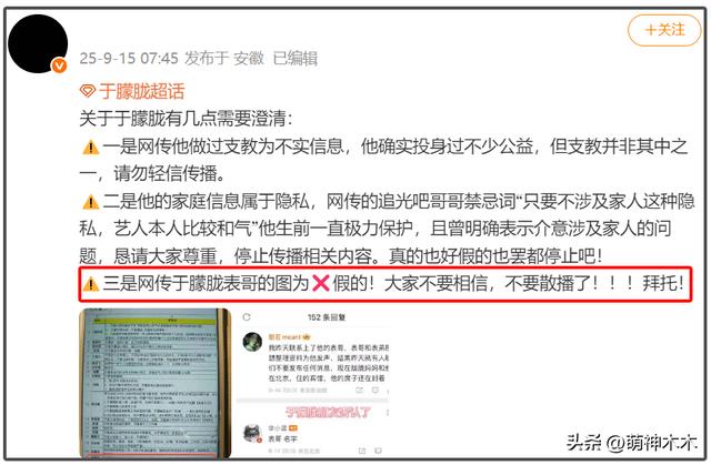 虽然不断有人因为造谣而被炸号,但由于于朦胧坠楼事件迟迟没有正式通报,一些人冒险制造话题,造谣帖子屡禁不止。还有人疑似冒充于朦胧表哥,无端带节奏,遭到大粉打假。