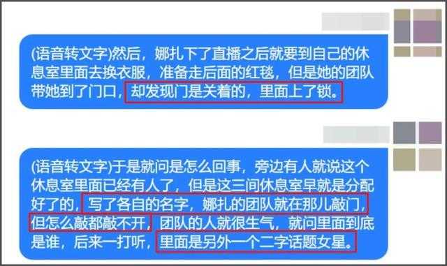 根据爆料博主的说法,去年的某时尚盛典本来有三个休息室,娜扎的休息室却被另一位女演员抢了,还上了锁。