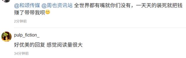 周也粉丝都痛恨她经纪团队不作为,在娜扎经纪人的辟谣上热搜后,周也粉丝更是喊话周也的团队,希望他们能学着娜扎经纪人的辟谣方式,遇到对自己不利的热搜该回应就回应。