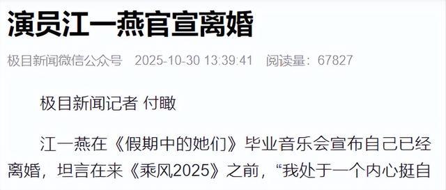 几天前,在综艺《假期中的她们》录制现场,久未发声的江一燕平静道出自己刚离婚一事。