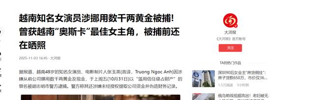 而除了这件事,更让人震惊的是跨国负面大瓜——越南影后张玉英被捕的事情。