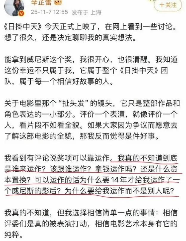 许多网友对号入座,认为郝蕾说的正是前段时间拿下威尼斯影后的辛芷蕾。