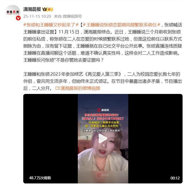 王睡睡爆料张硕恋爱期间频繁联系前任,张硕:难道不确认真实性吗