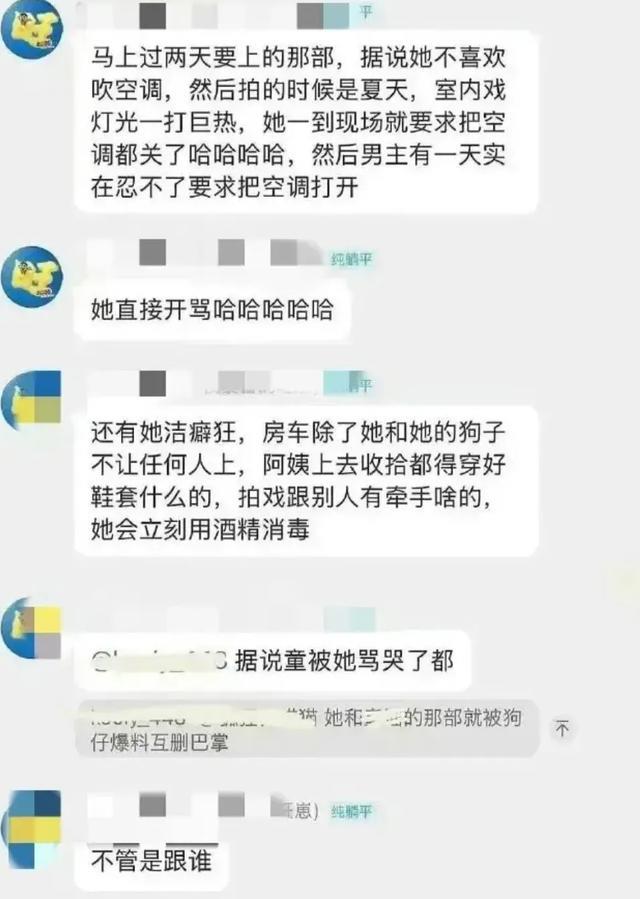 爆料里最让人咋舌的是房车使用规则:除了本人,只有宠物狗能自由进出。保洁阿姨打扫要穿鞋套,跟别人碰下手就要酒精消毒三遍。更夸张的是,有场戏NG多次后,她直接和对手戏演员互扇耳光,把对方骂到躲化妆间哭。这些细节让吃瓜群众直呼"比宫斗剧还精彩"。