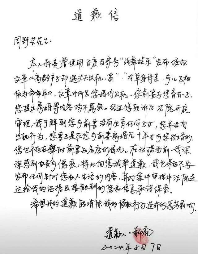 事情的起因是2024年一封道歉信,网友郝亮突然站出来,公开承认此前对周野芒的指责完全是误会。
