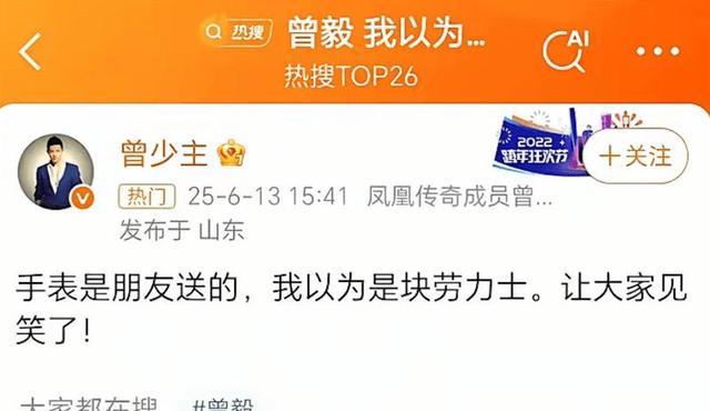 这事发生在六月,凤凰传奇的曾毅因为带了一只图案有争议的手表,被网友疯狂吐槽,演唱会也接连取消了。