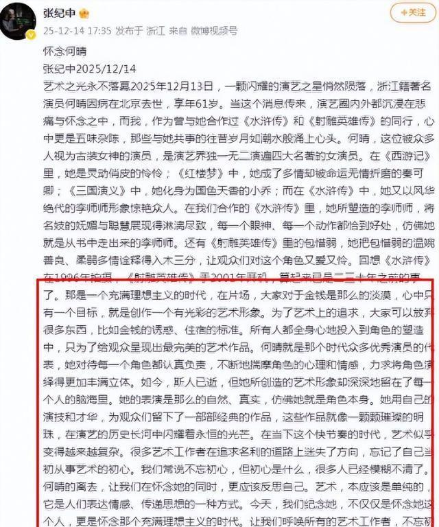 导演张纪中在发文悼念她的时候,字字句句都在怀念那个为了艺术纯粹付出的年代,那时候的演员,眼里有戏,心里有观众,唯独没有现在这么多的算计