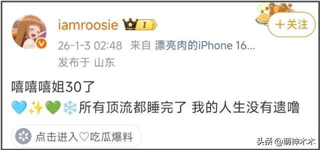开年瓜第二波!司晓迪事件发酵,3位女星受牵连,搅动半个娱乐圈 凌晨三点,司晓迪刷着手机睡不着,随手发了条动态,说自己三十岁了,该经历的都经历了,圈里那些顶流男星也都“睡过了”。话没说完就删,可哪还来得及?互联网的记忆可不讲删除键的事儿。短短几小时,热搜直接爆,鹿 ... 明星秘密01-06