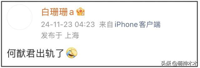 接着,爆料女主通过大号白珊珊甩出一句“何猷君出轨了”。