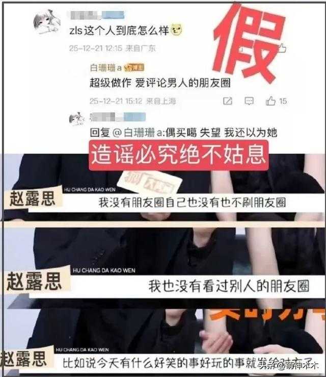 赵露思的粉丝则拿出了赵露思本人采访原话,赵露思说过自己没有朋友圈也不刷朋友圈。