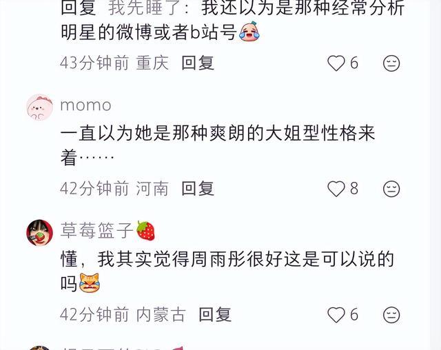 而她的这次风波也意外波及了多位明星,不少网友直言从此以后周雨彤的天就亮了,她之前因为和金晨一起参加《花少》节目,挨了不少的骂。