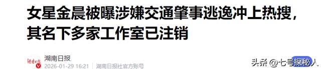 信息来源:湖南日报:女星金晨被曝涉嫌交通肇事逃逸冲上热搜,其名下多家工作室已注销