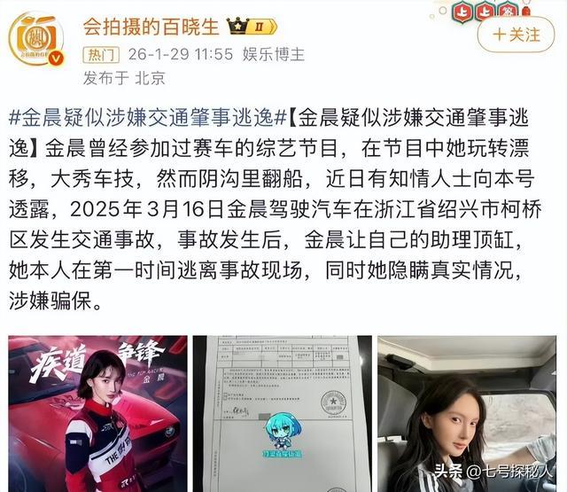 金晨事件全扫描:一场顶流明星的肇事逃逸罗生门 2026年1月底,一则关于演员金晨涉嫌交通肇事逃逸并骗保的爆料,在网络上掀起轩然大波。这起始于2025年3月的交通事故,时隔近十个月后被曝光,不仅牵扯出顶包、骗保等敏感情节,更让公众对明星私德与法律底线的讨论再 ... 明星秘密01-31