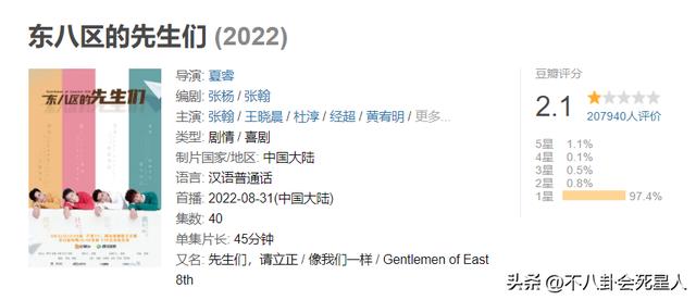 9月,是独属于张翰的。他用心制作的《东八区的先生们》跌破了网络评分的底线》,低至2.1分(最低2分)。