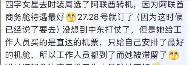 想象一下这个堪称魔幻现实主义的剧本:全球顶奢品牌的大使,正准备奔赴流光溢彩的巴黎时装周,结果她的经纪人、造型师、助理全都舒舒服服地坐着直飞航班抵达了塞纳河畔,而这位作为核心资产的顶流女星本人,却被孤零零地扔在了防空警报狂响、导弹残骸乱飞的中东转机机场。