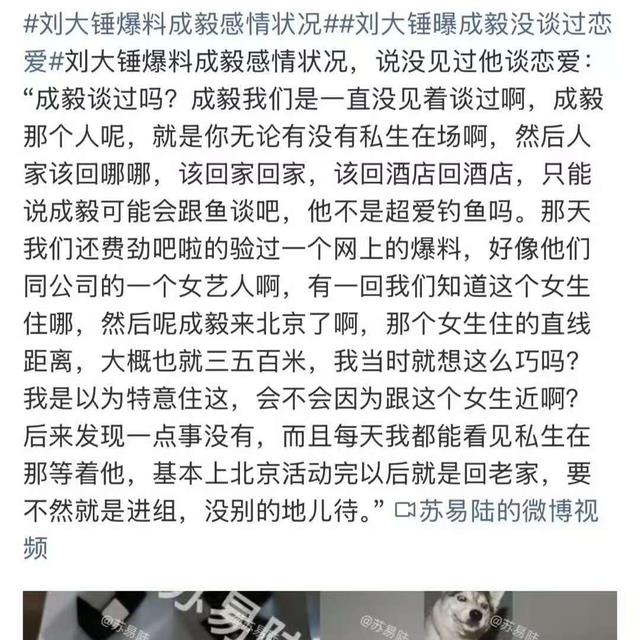 感觉刘大锤还是夸张了,甚至还有人开玩笑的说成毅“情人只有鱼”。