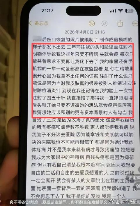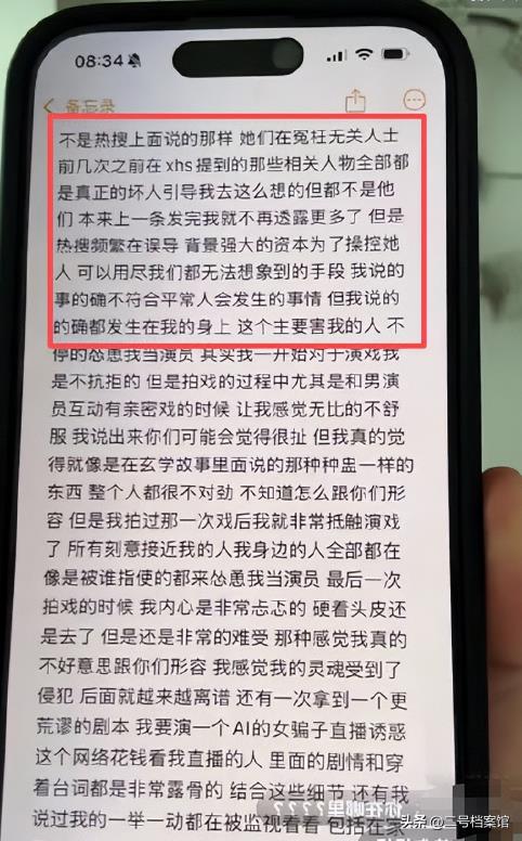 整场直播下来她都没有露镜,先是向大家看了自己手臂上全是伤的照片,并且还用备忘录告诉大家自己在三年前就被操控了,
