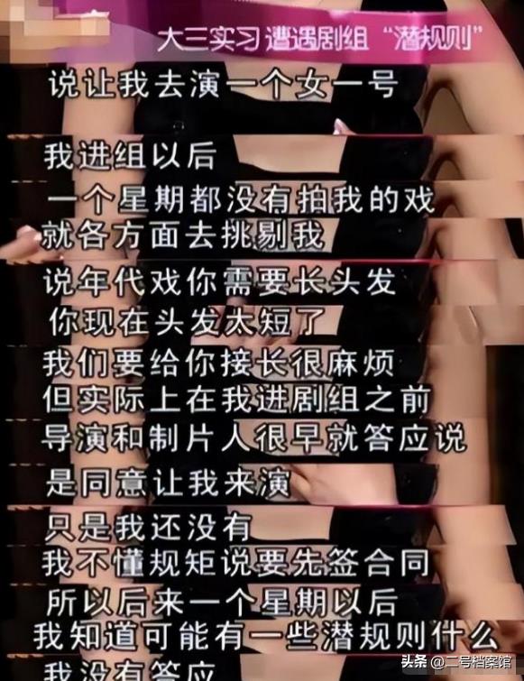 后面还有“潜规则”之类的事情,她没同意,最后导致角色没了,资源也没有了。