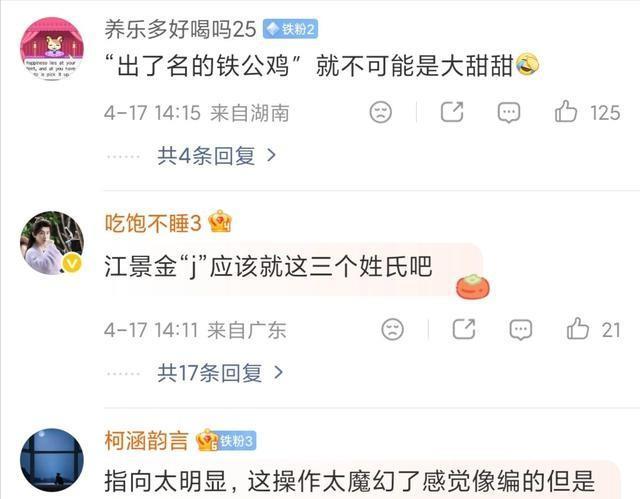 第二类是直接对号入座,盯着J姓女星名单去找匹配项,景甜、江疏影、金晨、蒋欣都被提起过,这类反应的特点不是笃定,而是借标签做拼图,拼得上就猜,拼不上就换人