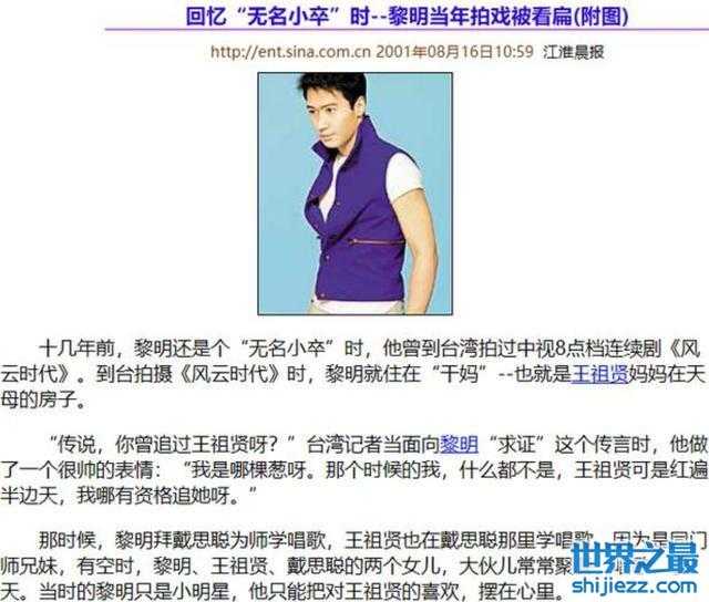 当时黎明只是一个小明星,尽管喜欢王祖贤,但两人事业差距真的很大。而王祖贤的目光全在齐秦身上,也没有注意到这个小同学。
