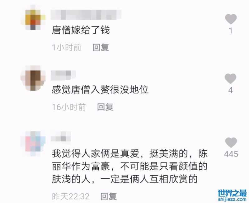 该视频在网上也引起众多网友议论,有人感叹“唐僧”最后还是嫁给了钱,感觉入赘很没地位,也有评论认为迟重瑞夫妻俩是真爱,陈丽华作为富豪也不可能是只看颜值的肤浅人,俩人应该还是互相欣赏才在一起的。
