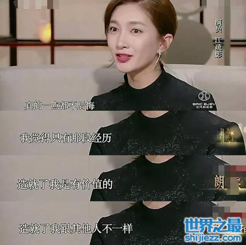 谈到这段经历的时候,江疏影表示并不后悔。因为这段经历对她来说,几乎铺垫了她后面的整个人生。