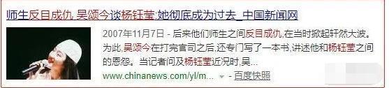 这对杨钰莹的事业更加不利,所以后来传出杨钰莹和恩师吴颂今两人“交恶”的消息。