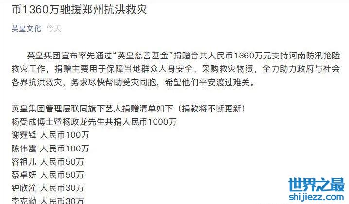 另外,谢霆锋之前也为河南捐款了100万。