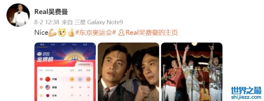 谢霆锋发文说,香港队运动员为祖国再添金牌。吴镇宇儿子直接晒出“金牌榜”。