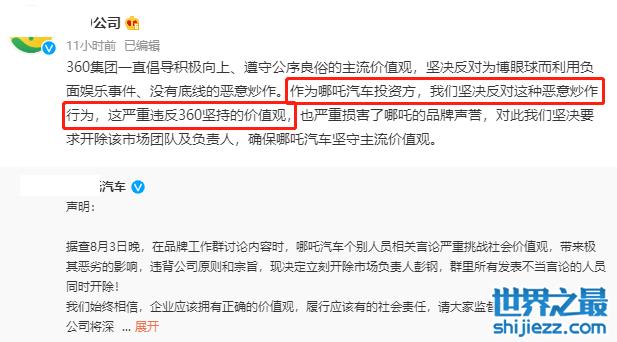 再然后,该汽车品牌的投资方,也出来表示,他们坚决反对这种恶意炒作的行为,他们要坚持正确的价值观才行。