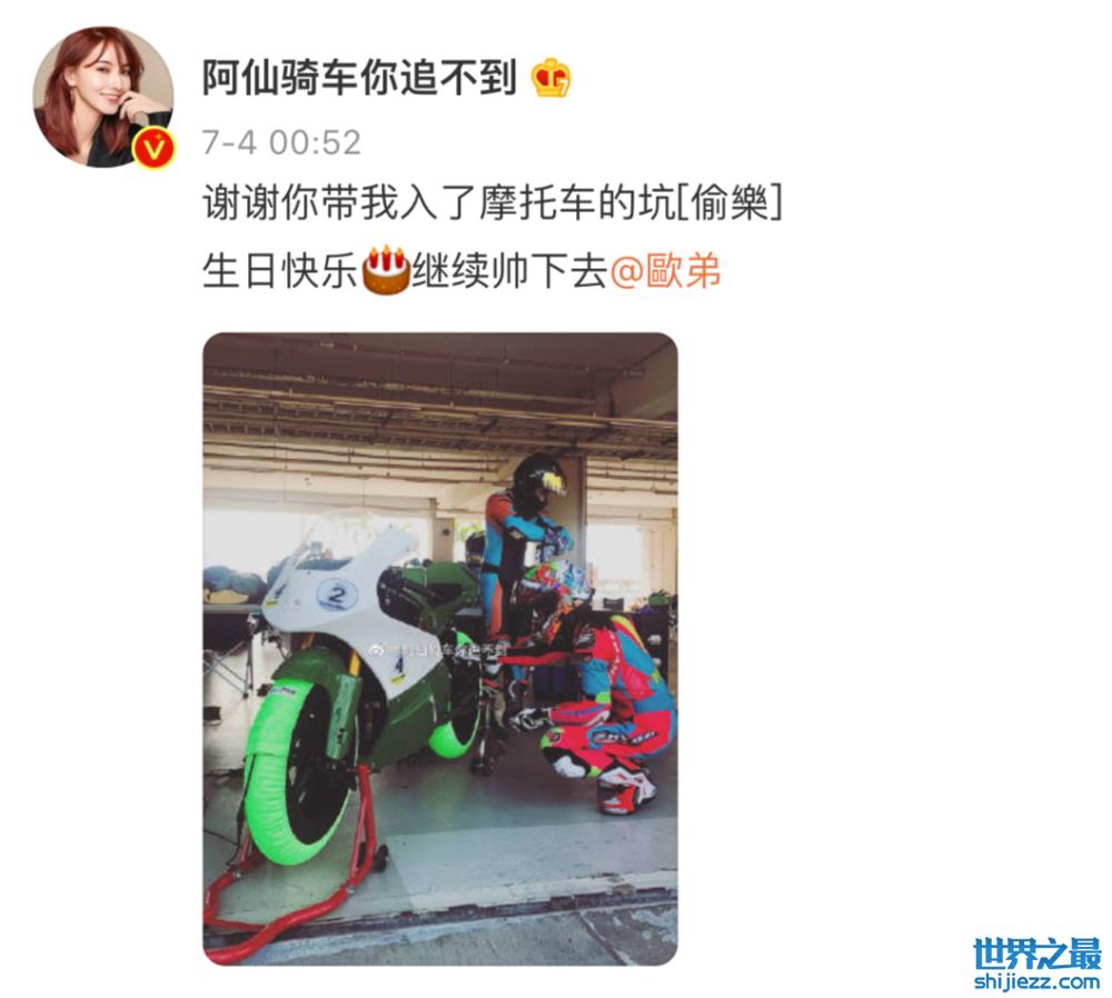 欧弟前妻7月份还在微博上秀恩爱,感谢欧弟带她骑摩托车,8月初两人就离婚了。看样子是真的做到了和平分手。