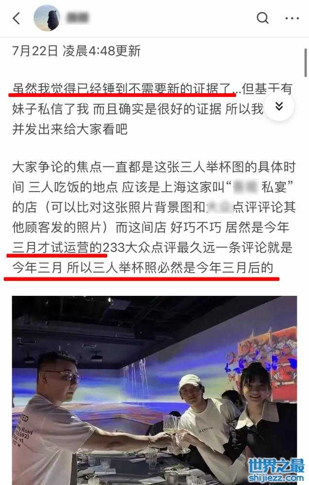 首先,这位网友晒出了张哲瀚与一位清纯美女的合影照片,照片中除却两人之外,还有一位成年男子,三人在上海一家餐厅聚会留影,根据餐厅的资料显示,这家店在今年3月初开始试运营,所以可以理性推断出,张哲瀚与这位美女一起吃饭是三月以后的事。