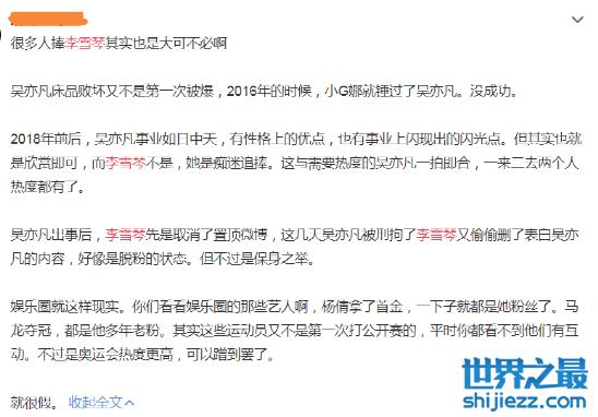 李雪琴问候吴亦凡的视频曾经火遍网络,她从未掩饰过自己吴亦凡粉丝的身份,都美竹曝光吴亦凡丑闻之后,她第一时间就取消了她和吴亦凡合影的微博置顶,但直到才删除相关微博。