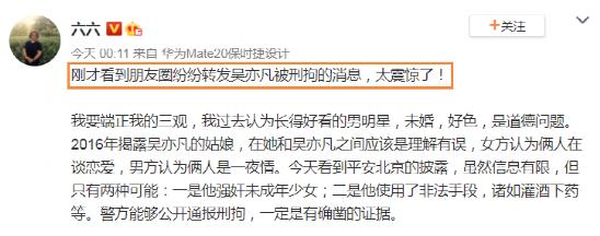 7月31日晚,官方发布吴亦凡已被刑拘的消息,这件引起全民关注的事件终于一锤定音了。对于大多数网友而言,这个结果并不出乎意料,但在此之前仍有一些人在期待着最后的反转,比如曾经力挺吴亦凡的六六。